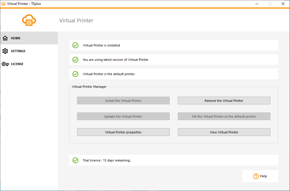 TSplus Virtual Printer se instala automáticamente durante la primera instalación de TSplus, y está disponible directamente durante el periodo de prueba.